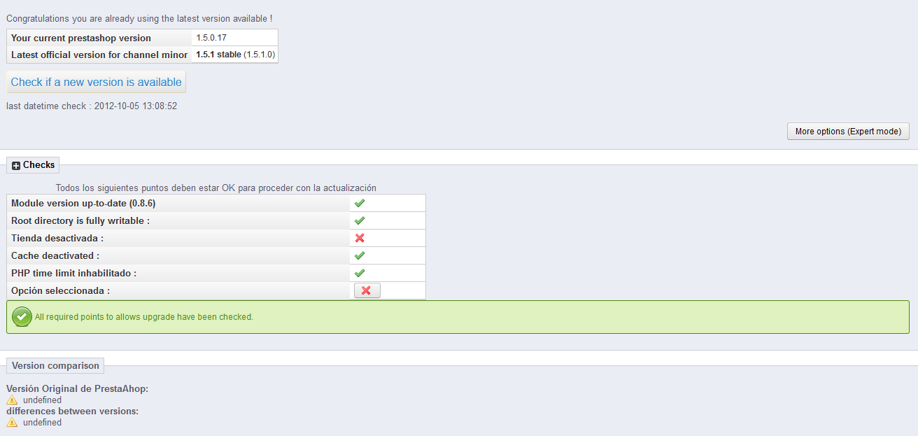 jjavii Posted October 5, 2012 Share Posted October 5, 2012 Pues no puedo actualizar de la 1.5.0.17 a la 1.5.1.0, todo está ok, y con la última versión de upgrade 0.8.6. En ese momento no tenía descativada porque es una impresión de ejemplo, pero con la tienda descativada y todo OK nada. Link to comment Share on other sites More sharing options...