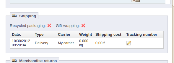 viger Posted May 24, 2013 Author Share Posted May 24, 2013 Finalmento riesco a implementare il tracking number come desideravo: Grazie! una cosa però: modificando direttamente il controller quando si aggiorna ps si perde la modifica... conviene inserire tutta la funzione postProcess() nel relativo override: override/controllers/admin/AdminOrdersController.php ciao Vero, un po' la mia incapacità (ho scoperto dopo che esiste l'override), un po' il fatto che col cavolo aggiorno, nessuna voglia di andarmi a cercare altre rogne! Ogni versione nuova è vero che toglie dei problemi, ma se ne porta altri... E così non mi sono sbattuto tanto per questo problema. Link to comment Share on other sites More sharing options...