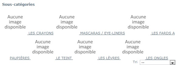 mike38saw Posted October 8, 2012 Share Posted October 8, 2012 (edited) Bonjour, J'espère que je post dans la bonne section, sinon merci de déplacé. Je rencontre un problème sur l'affichage des images de mes sous catégories (Voir screen) Le titre de la catégorie est décalé par rapport à l'image J'ai essayer de modifier des paramètres avec firebug mais rien n'y fait HELP !!! Merci d'avance Version Prestashop : 1.4.6.2 URL du site ou le problème survient : http://cosmetique-1e...m/46-maquillage Edited October 9, 2012 by mike38saw (see edit history) Link to comment Share on other sites More sharing options...