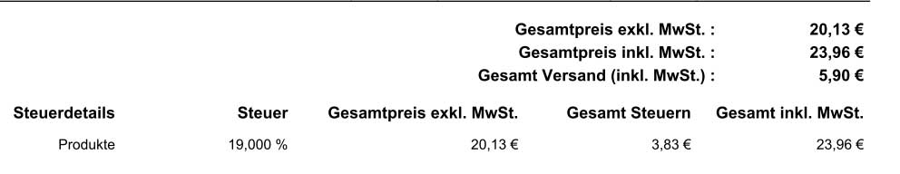 Unter Produkte --> Produkt --> Versand --> Zusätzliche Versandkosten (nach Menge)€ zzgl. MwSt. kann ich was eintragen ? Wenn ich 90 cent bei 2 Stk habe und der Kunde bestellt davon aber 3, die dann für 3,90 versendet werden sollen, dann könnte es doch heißen...,3 Stk zusätzliche Versankosten 3,00 € oder sehe ich da was falsch.