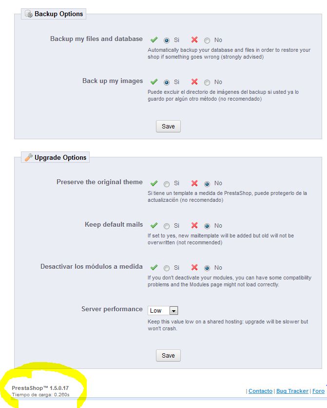 luis-gmo Posted October 9, 2012 Share Posted October 9, 2012 Buenas Noches. Yo no he podido actualizar de 1.5.0.17 a 1.5.1 stable (1.5.1.0) Hay un botón que siempre me aparece en rojo "Opción seleccionada :" Presiono el botón y me lleva a las opciones: Backup Options y Upgrade Options. Cuando presiono "Save" en estas opciones me lleva “Página No Encontrada” Igualmente si presiono el botón “Check if a new version is available” me lleva “Página No Encontrada” ¿Alguna sugerencia? Link to comment Share on other sites More sharing options...