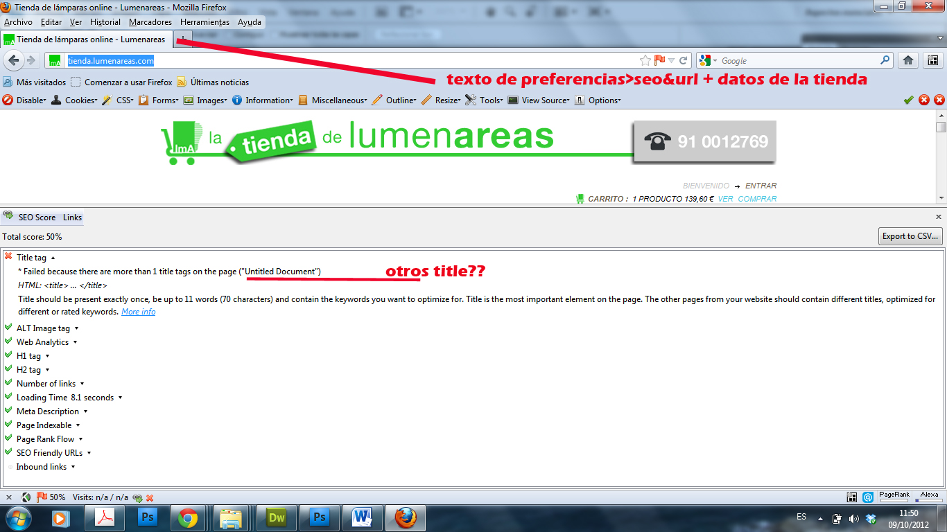 nadie Posted October 9, 2012 Share Posted October 9, 2012 Buenos días!! Intentando mejorar el seo de mi tienda y utilizando el Seo Doctor de firefox me dice que tengo más de una etiqueta <title> por página, empezando por la home... Creo que el texto que ponemos en Preferencias>seo&url en el back office se lee en el <title> del header.tpl .... pero ¿dónde más puedo tener el title duplicado? Me tiene un poco loca y no sé si eso tiene demasiada importancia a la hora del posicionamiento Gracias!! www.tienda.lumenareas.com Acabo de entrar a tu tienda. Exactamente, por lo que veo el problema, lo tienes en el modulo: homefreeblock_left Link to comment Share on other sites More sharing options...