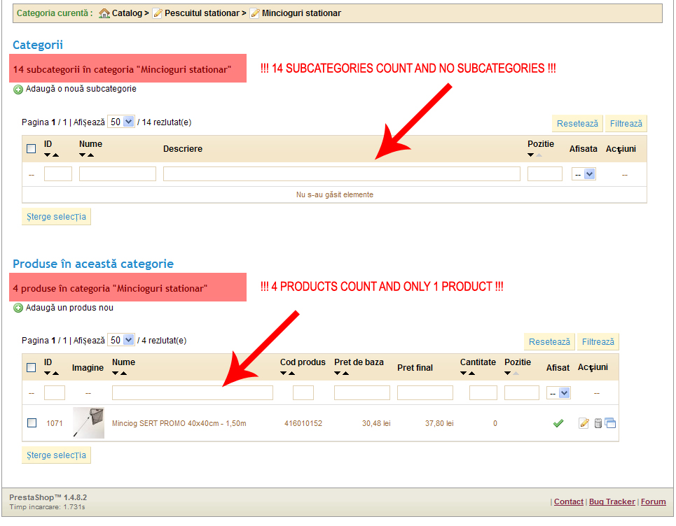 fishingnet Posted October 10, 2012 Share Posted October 10, 2012 (edited) Hello to all ! I use Prestashop 1.4.8.2 and I have over 1000 products into the shop distributed into many categories and subcategories (see my online shop). I get an error in my backoffice, on the catalog pages, categories and products count is wrong; See attachment for better understanding. Anyone knows how can i fix this problem ? Thanks in advance ! Bogdan Edited October 12, 2012 by fishingnet (see edit history) Link to comment Share on other sites More sharing options...
