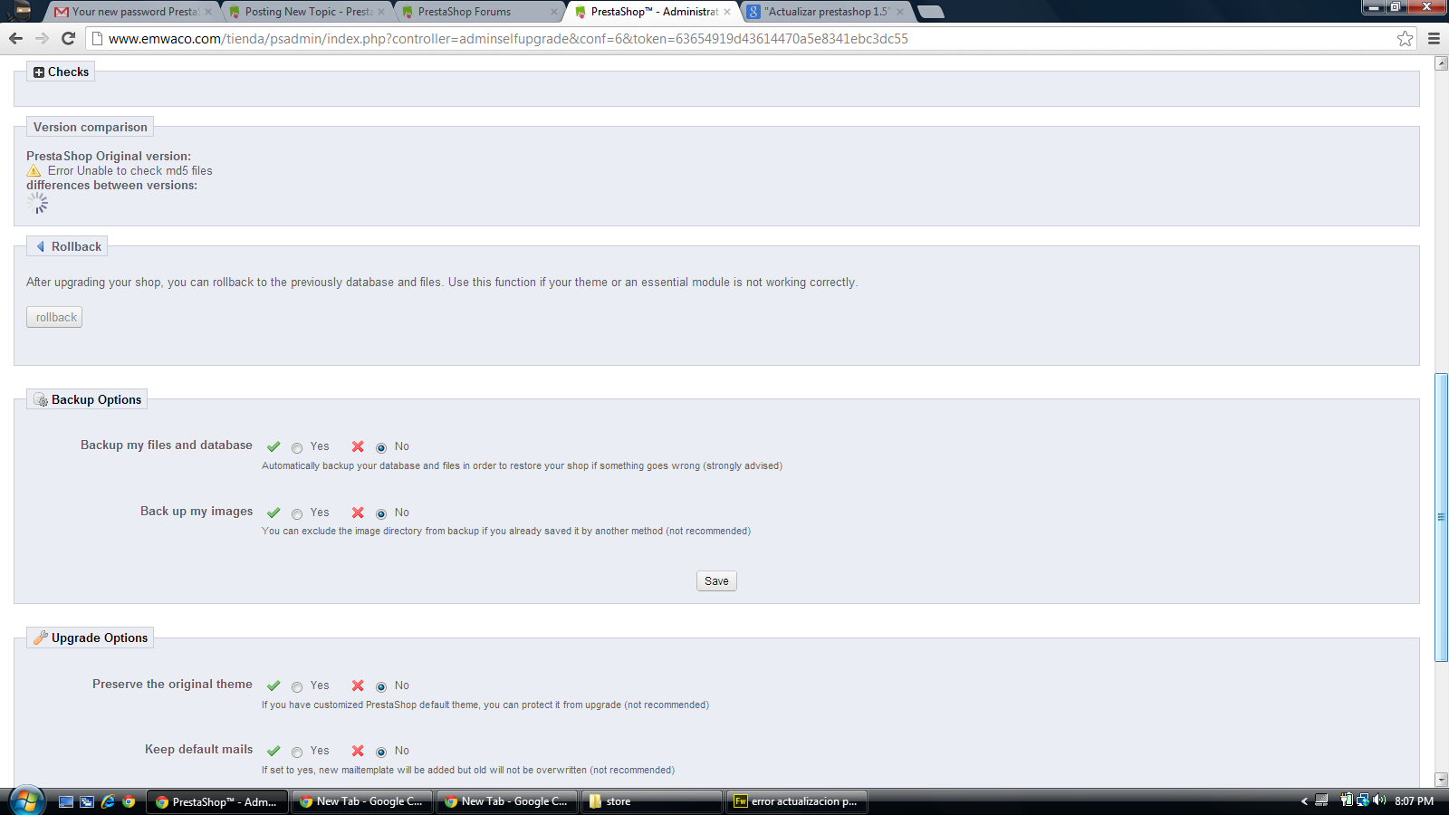 alexcc Posted October 12, 2012 Share Posted October 12, 2012 Instale hoy por medio de mi hosting de bluehost en un dominio la version 1.5.0 ya que en la opcion que manejan ellos de simple scripts es la version mas nueva que tienen , pero ahora con el modulo 1 click upgrade estoy tratando de actualizarlo y no me permite apesar de que ya sale el boton de upgrade now le pico y no pasa nada y abajo me sale un error les anexo unas imagenes haber si alguien tiene la respuesta a eso , muchas gracias de antemano. Link to comment Share on other sites More sharing options...