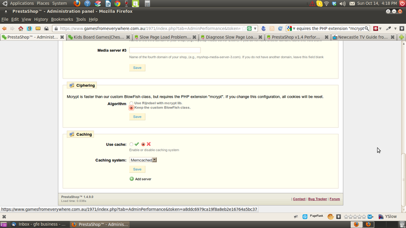 mcrypt : Mcrypt is faster than our custom BlowFish class, but requires the PHP extension "mcrypt". If you change this configuration, all cookies will be reset.