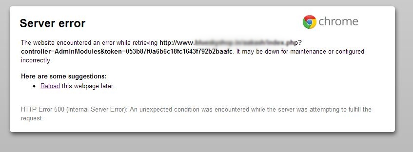 Its a serious matter for me. Whenever I tried to open Modules tab in my admin area, I got 500 internal error showing server error.