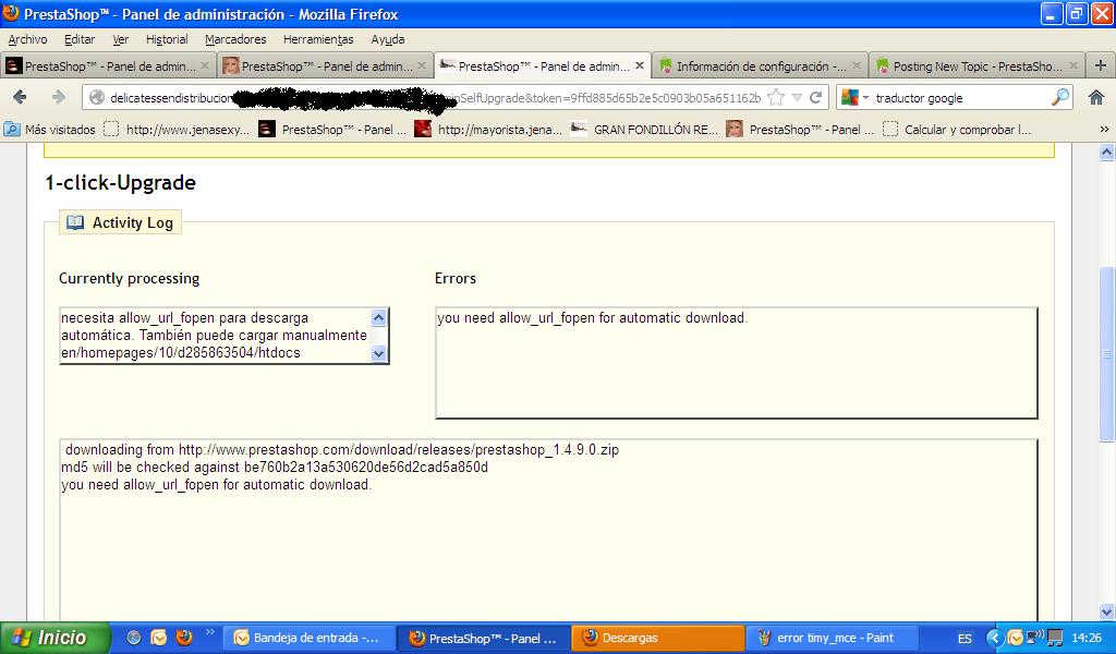 junnecito Posted October 16, 2012 Share Posted October 16, 2012 Buenas tardes: Estoy tratando de actualizar de la ver. 1.4.8.2 a la 1.9 porque no meje directamente a la 1.5.1 y me es imposible, cuando le doy a actualizar me sale lo siguiente: necesita allow_url_fopen para descarga automática. También puede cargar manualmente en/homepages/10/d285863504/htdocs/delicatessen/alicia24101312/autoupgrade/downloadprestashop.zip Tengo el allow_url_fopen en la raiz, no comprendo mas nada, alguien podria ayudarme? adjunto pantallazo. Muchas gracias por vuestra ayuda. Link to comment Share on other sites More sharing options...