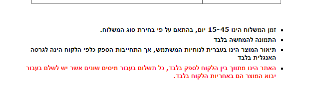 ilan316 Posted October 20, 2012 Author Share Posted October 20, 2012 the site in hebrew language hope but here you go for example a link to a product: http://buymore.co.il...-android-4.html in the description, scroll down to the bottom of the table. there are 4 lines of text - see picture attached. at the moment i adding this text manually for every product i'm loading to the shop Link to comment Share on other sites More sharing options...