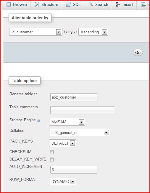 natebc Posted October 21, 2012 Author Share Posted October 21, 2012 Good morning, I have just had a look at my cpanel and found what your looking for. But not sure how I found it, anyway, goto the landing page of your cpanel and click on phpmyadmin, you should then see a list of 1 or more databases, click on the one that is relevant, scroll down the page until you find _ customer then click on structure ( to the right ) you should then get a page with id customer at the top, goto the right and click change, you should then get another page you then click operations I hope this is clear Paul ps, I have tried to attach image but for some reason it won't let me Hi Paul, I think I have found it but can you tell me what line to change Link to comment Share on other sites More sharing options...