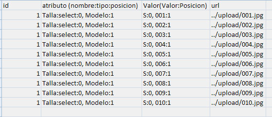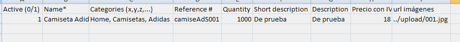 pacopp Posted October 21, 2012 Share Posted October 21, 2012 (edited) Hola buenos dias a todos, actualmente estoy creando una web con prestashop version 1.5.1.0 en servidor local (localhost) con xampp. Bueno el problema me surge a la hora de hacer una importacion del csv de las combinaciones de los productos, cosa que no tengo ningun problema al importar el csv de las categorias y de los productos. El caso es que me ocurre una cosa rara y he pensado que mejor que intentar explicarlo, pues poneros una imgen comparando lo que ocurre al importar los productos solamente, y luego lo qe ocurre una vez importado el csv de las combinaciones de dicho producto. Creo bien que puede ser un error del sistema de prestashop o bien, lo mas seguro, que sea yo el que redacto mal el fichero csv de las combinaciones. Bueno espero que me presten una ayuda para intentar solucionar esto. Os dejo adjuntado al post la imagen. Un saludo foreros. Pd: edito e icluyo imagenes de los ficheros .csv de productos y combinaciones para que lo veais. Edited October 21, 2012 by pacopp (see edit history) Link to comment Share on other sites More sharing options...