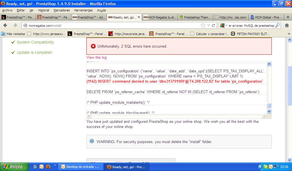 No teniendo respueste sobre ewte problema mio decidí actualizar a la ver. 1.9 para ver si era un problema de versión pero no lo es, la actualización se realizo correctamente per me muestra 2 errores en la base de datos y no tengo ni idea de como corregirlos, adjunto pantallazos para que podais ayudarme a resolverlo.