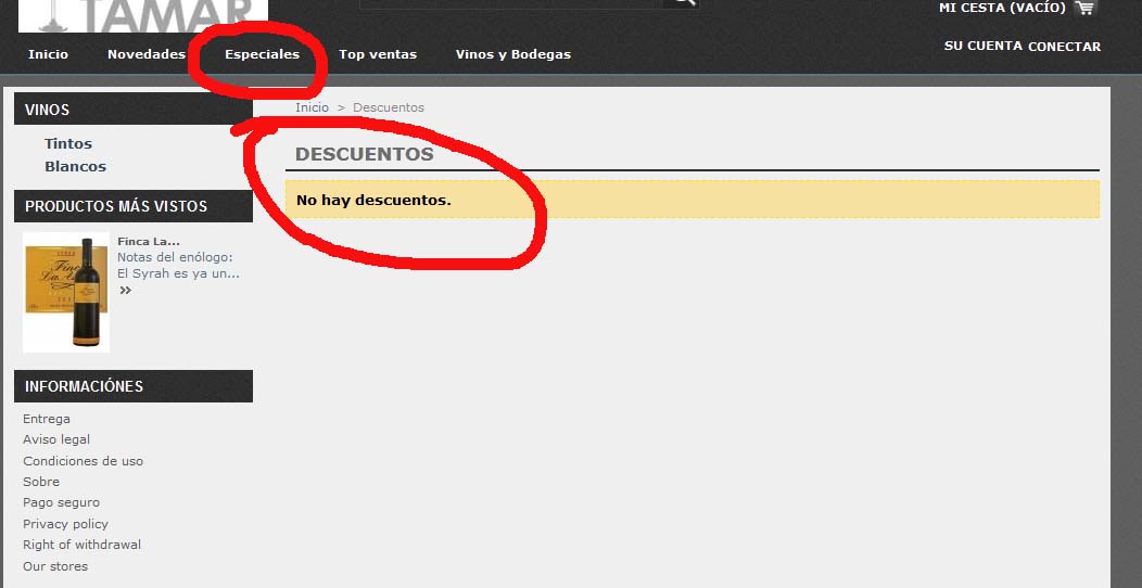 nadie Posted October 23, 2012 Share Posted October 23, 2012 Buenas tardes, a ver si alguien me puede echar una mano. He comprado la plantilla PS169 y la configuración y personalización las tengo ya bastante avanzadas. El problema que tengo ahora es que no se como quitar el botón "Especiales" del Top Menu t el correspondiente apartado de promociones y descuentos. He estado mirando módulo por módulo en sus configuraciones pero no he visto ninguno que haga referencia a esto. En el módulo del tema PS169 que se llama "Top menu block v1.4 por uhupage", puedo activar o desactivar, pero me aparece o desaparece todo el bloque de menús, sólo quiero quitar que el botón que enlaza con las promociones. ¿Cómo puedo hacerlo? Adjunto un pantallazo de lo que quiero quitar para que se vea más claro. Gracias anticipadas. Por lo que he visto de tu plantilla, esos enlaces lo tienes a mano en el fichero: /modules/uhutopmenu/uhutopmenu.tpl Simplemente edita el fichero, quita el enlace que no quieres guarda los cambios y no se te olvide forzar compilación, en la pestaña Preferencias -> Rendimiento, para que se apliquen los cambios. Link to comment Share on other sites More sharing options...