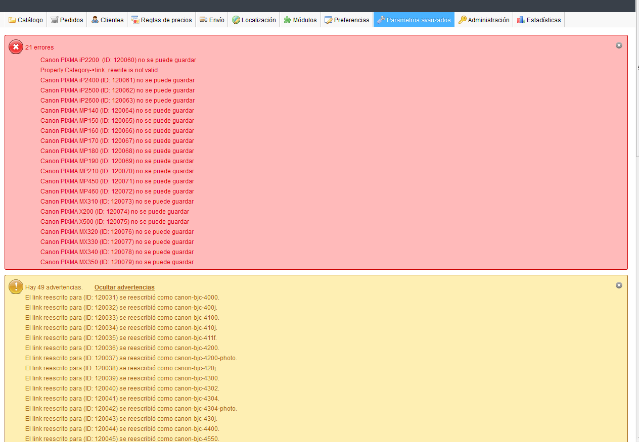 tantotinta Posted October 24, 2012 Share Posted October 24, 2012 (edited) Buenos dias, al intentar importar la lista de categorias se suben menos de la mitad y sale ese error, el archivo de las categorias es simple, en una parte unas marcas y en la otra columna la categoria madre, no hay mas y no descubro el porque de ese error. A alquien le pasa o sabe algo? Graciaas! Edited October 24, 2012 by tantotinta (see edit history) Link to comment Share on other sites More sharing options...