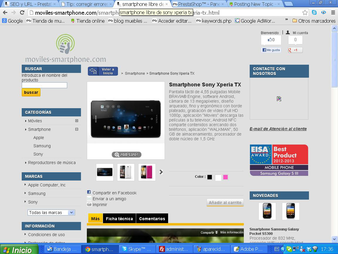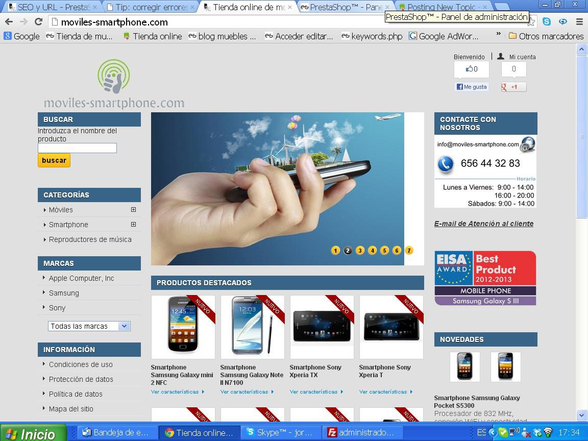nadie Posted October 24, 2012 Share Posted October 24, 2012 En Contacte con nosotros he puesto una imagen para poner el correo, el telefono y el horario. Como queria que se viese la url amigable lo active, se genero el archivo .htacces con permisos 644 y hasta aqui todo bien. Cuando estas en la pagina de inicio de la web se ve la imagen del bloque Contacte con nosotros pero al entrar en un producto no se ve la imagen de contacte con nosotros. Esto por que es? He leido en otros post que al ponerlo de la url amigable se solian desaparecer las miniaturas pero esto a mi no me ha pasado. www.moviles-smartphone.com En este fichero: /modules/blockcontact/blockcontact.tpl Has puesto esto: <img src="./modules/blockcontact/contacta.jpg" width="200" height="143"/> Déjalo así: <img src="{$base_dir}modules/blockcontact/contacta.jpg" width="200" height="143"/> Link to comment Share on other sites More sharing options...