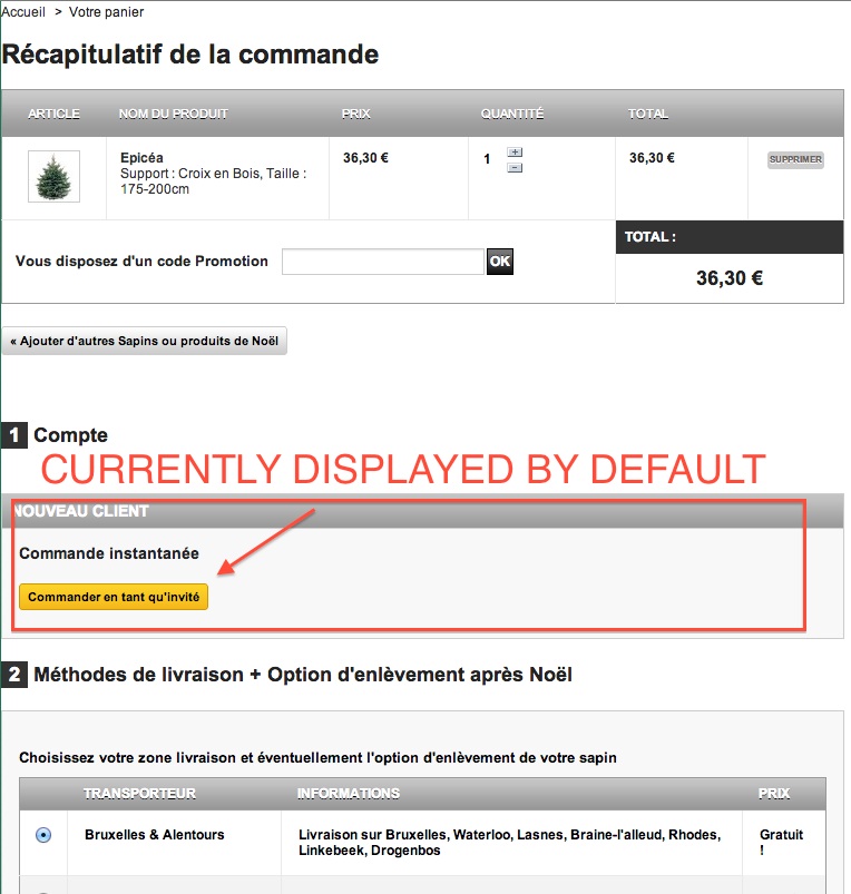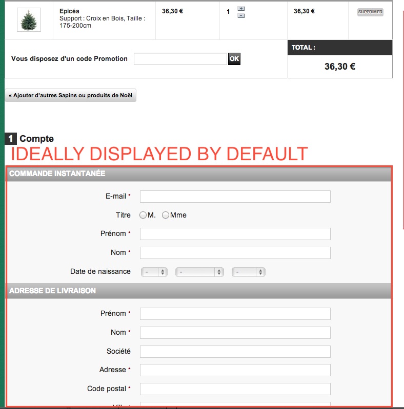 olivierlemaire Posted October 24, 2012 Share Posted October 24, 2012 Hi, I am writing this as I was not able to find the solution to my problem anywhere on this forum. I have PS 1.4.8.2 running. I want to remove any option to create an account and only use guest check-out. Ideally I want to avoid to have a user click on the "guest check-out" button to display the guest form (includ name, age, address, etc). I have managed to remove any "create new account lines" but I am strungly to display the form content for "guest check-out" by default. Anyone can help me with this? I am attaching two screenshot (one with current situation to show for, one with the form I would like to show by default on OPC) you can find my site on newversion.mysapin.be. Regards, olivier Link to comment Share on other sites More sharing options...
