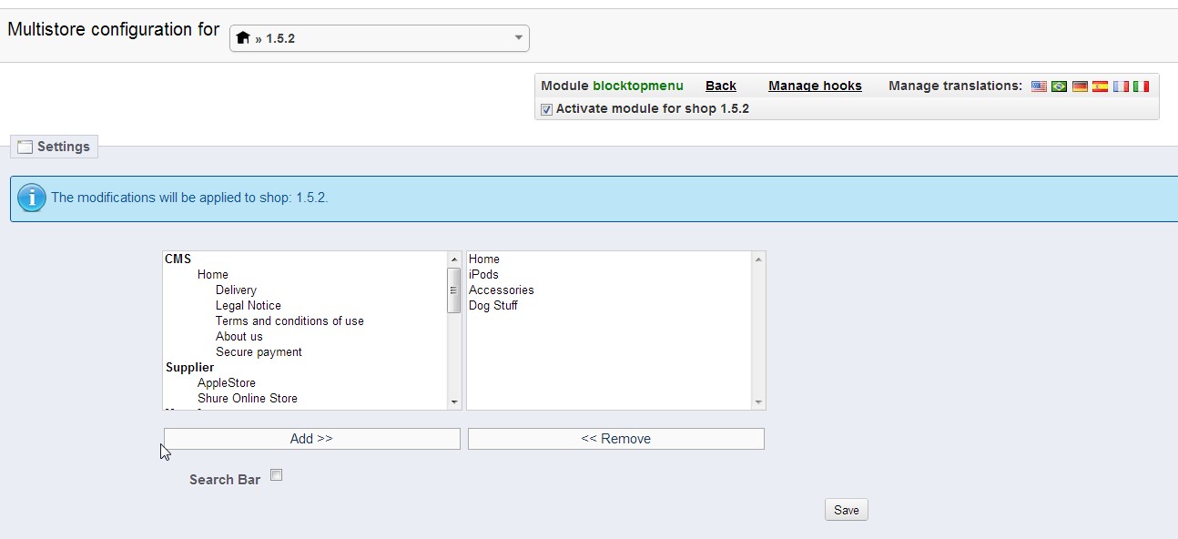 is there any known bugs with prestashop 1.5.2 when adding or creating new category to show in the top menu ?