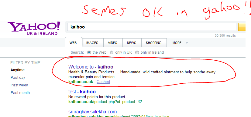 dibs223 Posted November 1, 2012 Author Share Posted November 1, 2012 I've just tried yahooo search engine and it seems ok so i can't understand why googles not ok but yahoo is! I had a good site i could go to to test all this but I lost the address a block gave me on here ! It was a really good web site. it would check all search engines plus tags and meta tags! wish i could find it again but I can't :-( Ive even looked through all my posts on here to see if I could find out who helped me on this! :-( heres a snapshot of yahoo search! ....................... Link to comment Share on other sites More sharing options...