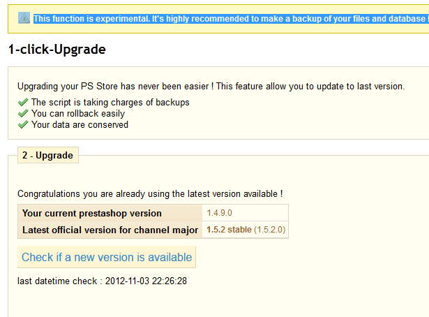 nexxuseis Posted November 4, 2012 Share Posted November 4, 2012 (edited) Siguiendo los pasos del tutorial http://www.jose-agui...p-de-1-4-9-1-5/ En ningun momento me sale el boton "Actualizar Prestashop Ahora" Nose que hacer. Edited November 4, 2012 by nexxuseis (see edit history) Link to comment Share on other sites More sharing options...