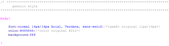 juandelarce Posted November 8, 2012 Author Share Posted November 8, 2012 (edited) Gracias Victor. !Solucionado¡ Resumo para que sirva de ejemplo para otros que lo necesiten. PARA PONER FONDO CON UN COLOR O IMAGEN y PAGINA EN OTRO COLOR >Plantilla tema>css>global css> #page {background-color: (el que quieras); } #header {z-index:10} #columns {z-index:1} #left_column {} #center_column {} #right_column {} #footer {} /* ************************************************************************************************ generic style ************************************************************************************************ */ body{ font:normal 14px/16px Arial, Verdana, sans-serif; color:#484848; background: url('../img/el que quieras.jpg'); Edited November 8, 2012 by juandelarce (see edit history) Link to comment Share on other sites More sharing options...