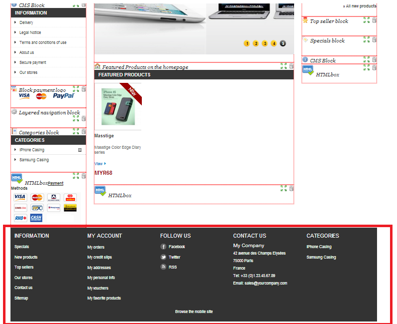 sdas86 Posted November 6, 2012 Author Share Posted November 6, 2012 what you exactly want to add to footer section and where? Hi Vekia, I would like to have Payment Images (Logo of PayPal, Banks, VISA, Mastercard etc.) at the footer. You can look at this site's footer section. They have "Payment Method" and "Verified Service". http://www.lazada.com.my/ How to make the things in footer moveable? It would be easier if it is possible to move items in the footer round using "Live Edit". Another thing is that when I Enable CategoriesBlock, "Categories" will appear on the left sidebar and it appears again in the footer. How to make categories appear only in left sidebar but not appear in footer again? Thanks Link to comment Share on other sites More sharing options...