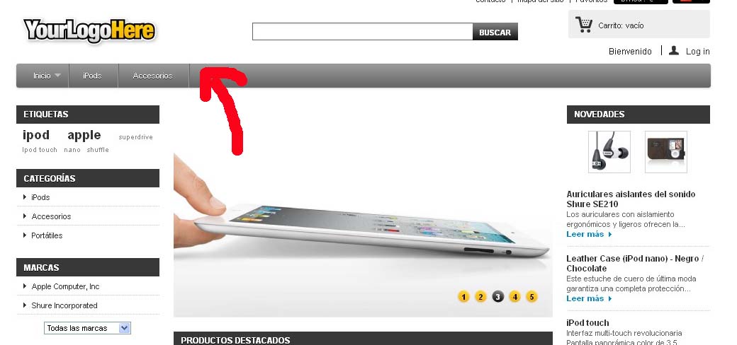 tienda josancin Posted November 8, 2012 Share Posted November 8, 2012 Hola a todos: Perdonad si es una pregunta tonta, soy muy nuevo en prestashop He aprendido a poner items en los modulos y poco mas. Adjunto imagen porque querria preguntar como poner una pagina que cree en el menu de navegacion horizontal en el que en el tema por defecto aparecen solo incio ipads y accesorios; no se como ver a que modulo pertenecen. Adjunto imagen por si no se entiende lo que quiero decir. Gracias y que vaya bien Link to comment Share on other sites More sharing options...