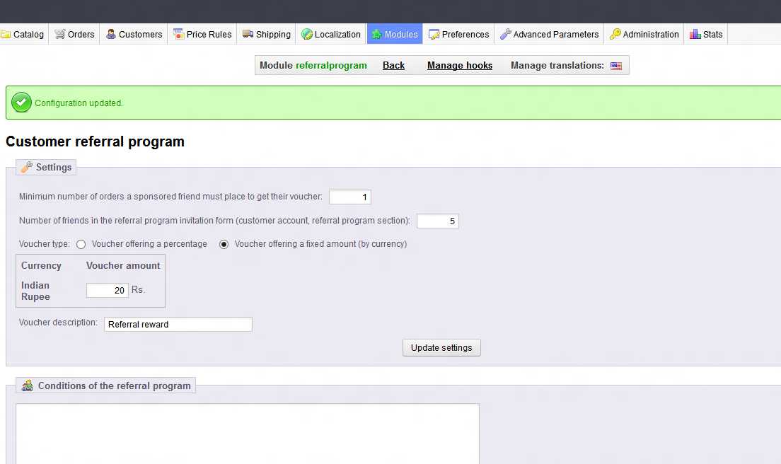 {l s='he or she will receive a %1$d voucher and you will receive your own voucher worth %2$d.' sprintf=[$discount,$discount] mod='referralprogram'}