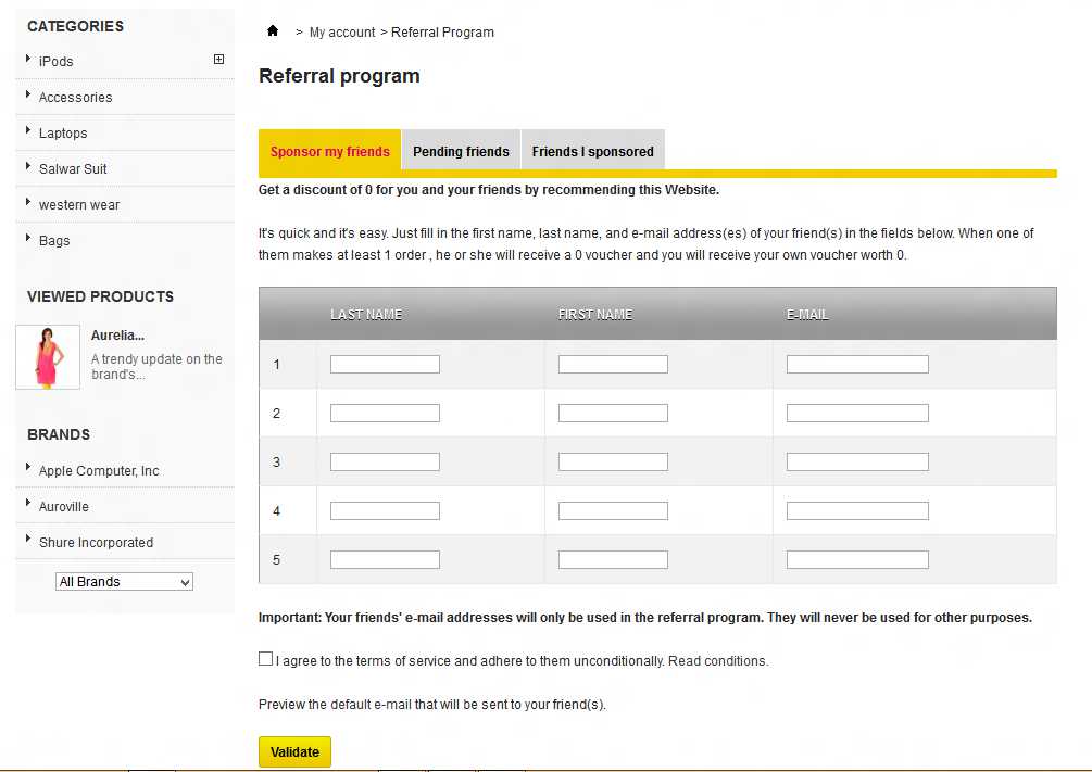 It's quick and it's easy. Just fill in the first name, last name, and e-mail address(es) of your friend(s) in the fields below. When one of them makes at least 1 order , he or she will receive a 0 voucher and you will receive your own voucher worth 0.