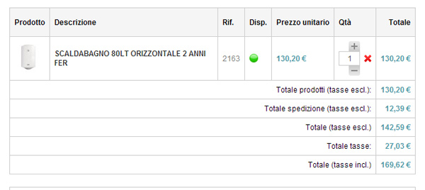 x-onit Posted November 10, 2012 Share Posted November 10, 2012 Ciao ragazzi. Ho un problema ...! Il carrello della spesa mi da un errore nel calcole dell'Iva. Vi lascio un esempio così potrete capire: come vedete il totale delle tasse è sbagliato. 142,59 * 1.21=172.5339 invece il risultato è minore. Le tasse dovrebbero essere = 29,9439€ ivece di 27,03€ Le tasse in Pagamento Tasse sono state impostate al 21% qualcuno mi può aiutare? Grazie in anticipo Link to comment Share on other sites More sharing options...