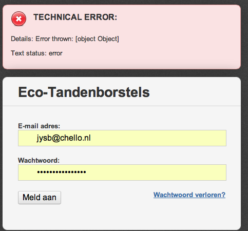 fng77 Posted November 14, 2012 Share Posted November 14, 2012 Hi This morning I tried to login to my Prestashop but I cant. It says: TECHNICAL ERROR: Details: Error thrown: [object Object] Text status: parsererror Both when I try to login and when I Try to get a new password. What to do? Yours // Niklas I have v. 1.5.2 Link to comment Share on other sites More sharing options...