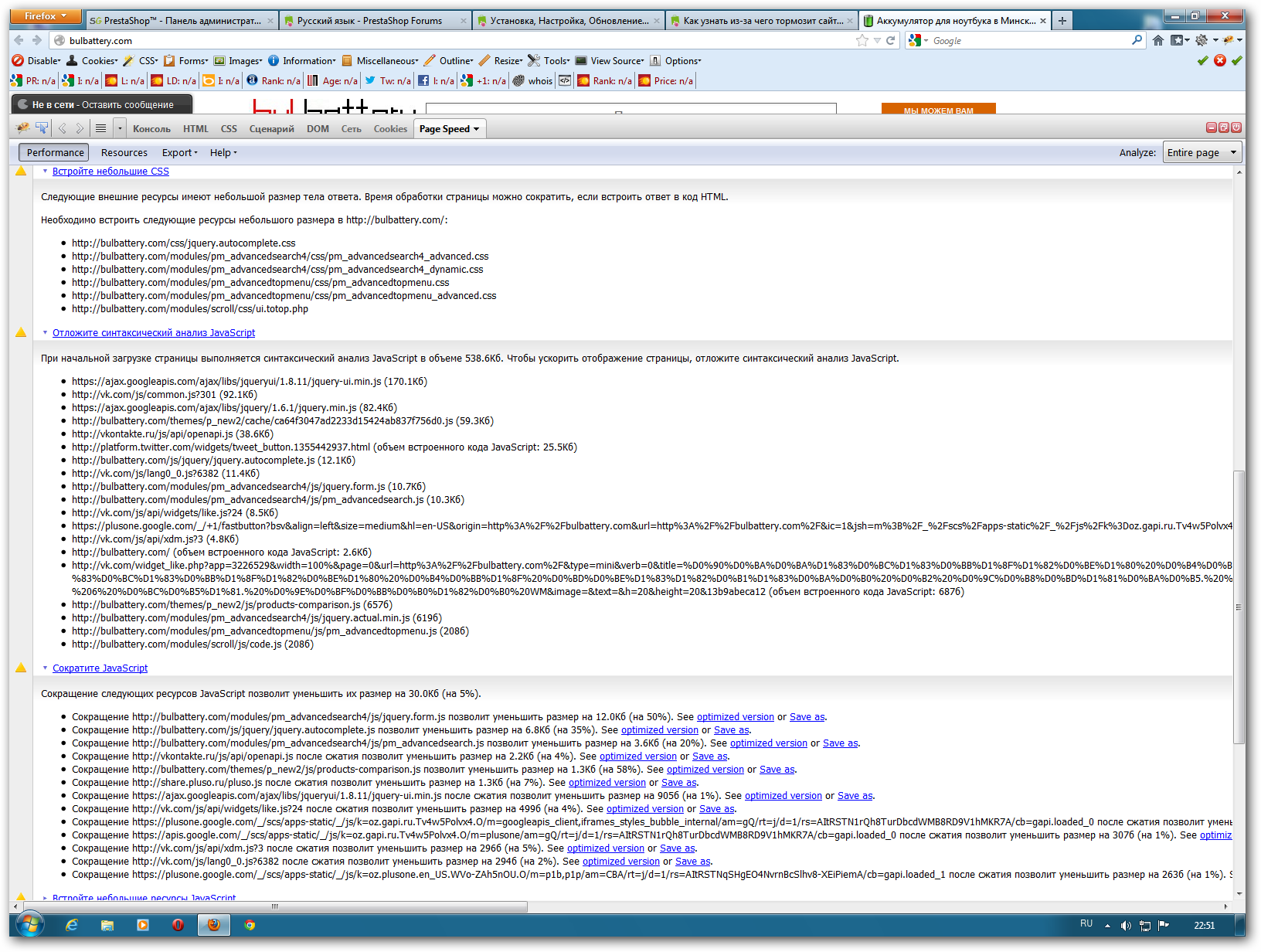 Как узнать из-за чего тормозит сайт? ( 40 сек загрузка)