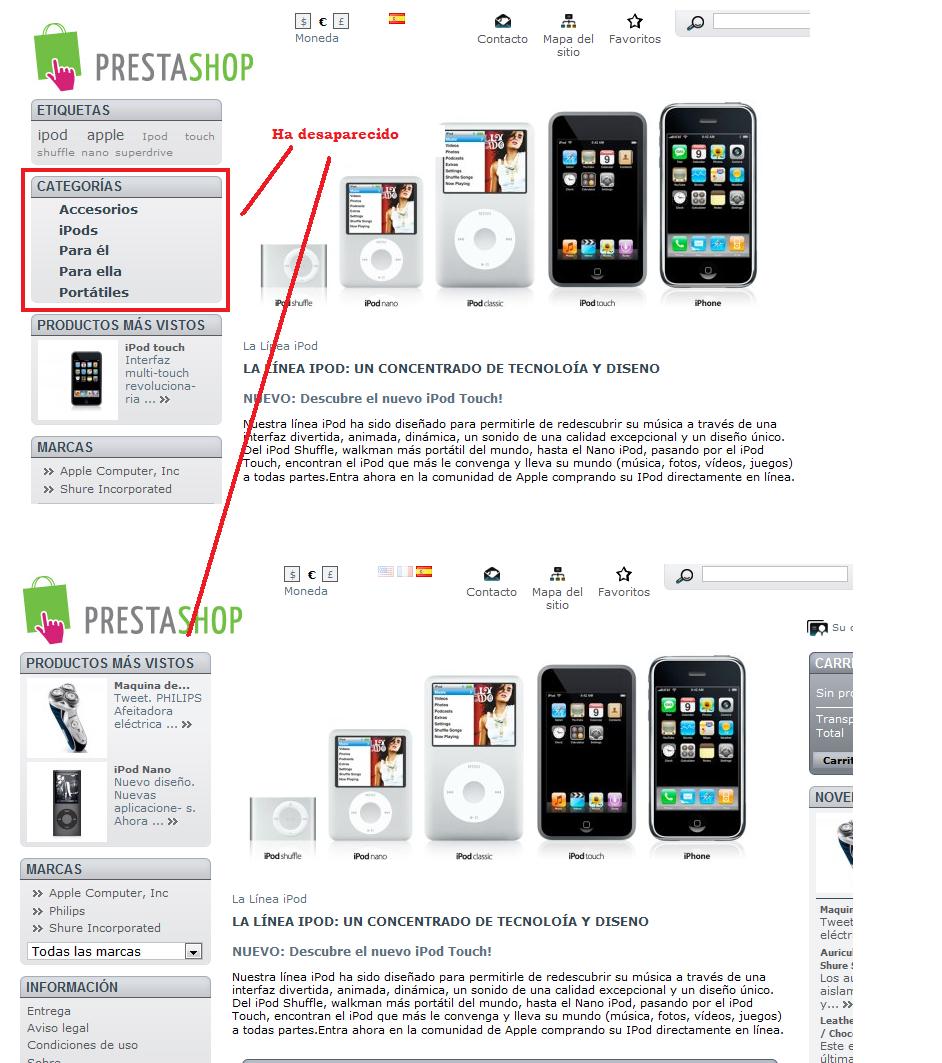 Nuria75 Posted November 15, 2012 Share Posted November 15, 2012 Hola, soy nueva en ésto y os pediría, por favor, que me ayudaráis con un problemilla. Toqueteando donde no debo, me ha desaparecido la sección de Categorías. Os adjunto pantallazo para que lo veáis mejor. Así mismo, cómo puedo cambiar el nombre de esa sección? En vez de "Categorías" quisiera otro nombre. Muchas gracias por adelantado. Un saludo 3 Link to comment Share on other sites More sharing options...