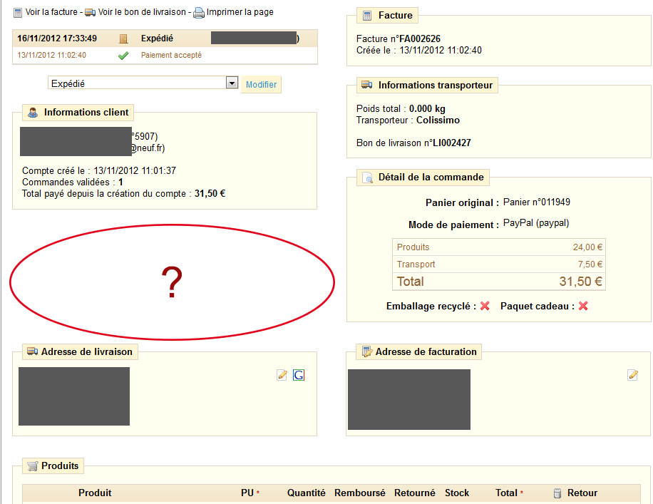 Chris48 Posted November 18, 2012 Share Posted November 18, 2012 (edited) Bonjour à tous, J'ai mis à jour ma boutique sous prestashop de la version 1.4.7 à 1.4.9, tout s'est bien déroulé, sauf que lorsque je consulte les commandes qui ont été payées avec paypal, je n'ai plus les données, ni le bouton permettant de rembourser, cf la pièce jointe. Est ce que quelqu'un peut me dire comment les faire réapparaitre ? J'ai essayé une installation en local et dès que j'importe les données des commandes cette zone disparait, il doit donc s'agir d'une mofication à faire dans la base de données, mais où ? Edited November 18, 2012 by Chris48 (see edit history) Link to comment Share on other sites More sharing options...