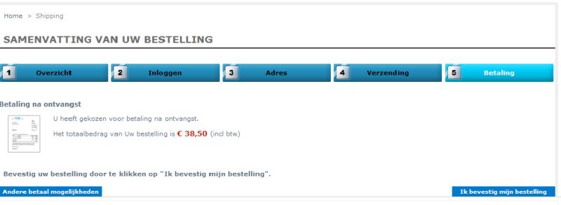 Frevab Posted November 18, 2012 Share Posted November 18, 2012 Ik zocht een betalingsmodule voor het betalen achteraf. Vond "Bill" en heb dit geïnstalleerd werkte op zich prima. Blijkt een omgebouwde rembours (COD) module te zijn silbersaiten.de. Ik krijg aan het einde van het plaatsen van een bestelling en na "bill" gekozen te hebben de volgende melding op het scherm "Ongeldige verzendingsnummer" Hij verwerkt de bestelling verder wel goed. In de email bevestiging staat onderaan bij bericht van klant: "Warning : the secure key is empty, check your payment account before validation" Waar komt dit door? Heb gekeken in validation.php en daar staat: Tools::redirectLink(__PS_BASE_URI__.'order-confirmation.php?key='.$customer->secure_key.'&id_cart='.intval($cart->id).'&id_module='.intval($bill->id).'&id_order='.intval($bill->currentOrder)); Tweede vraag: In het afronden van de bestelling in de webwinkel kan je kiezen voor de betalingswijze (modules) en als ik de muis op de "Bill" module houdt wordt er een tekst zichtbaar (Mouse Over) en daar staat "Pay with Cash on Delivery (COD)". Ik heb lopen zoeken waar deze melding staat zodat ik de tekst kan aanpassen/vertalen maar kom er niet achter. De hele module heb ik via "Beheersysteem>Tools>Translations" vertaald. Waar kan ik dit vinden om dit in het nederlands te wijzigen of welke regel in welk bestand bepaald de tekst van de MouseOver? Link to comment Share on other sites More sharing options...