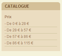 buchanon Posted November 18, 2012 Author Share Posted November 18, 2012 Arf, à trop faire de choses à la fois... J'ai oublié de marquer la moitié de mon message u__u. Le problème du bloc de navigation à facettes et de n'être disponible uniquement pour les catégories de produits (d'ailleurs, mon thumbnail est en fait un screencap du bloc de navigation à facettes) Je souhaiterais la même chose, mais affichable en colonne de page d'accueil et filtrant TOUT les produits ! Désolé de mon oubli, et merci de vos réponses très rapides Link to comment Share on other sites More sharing options...