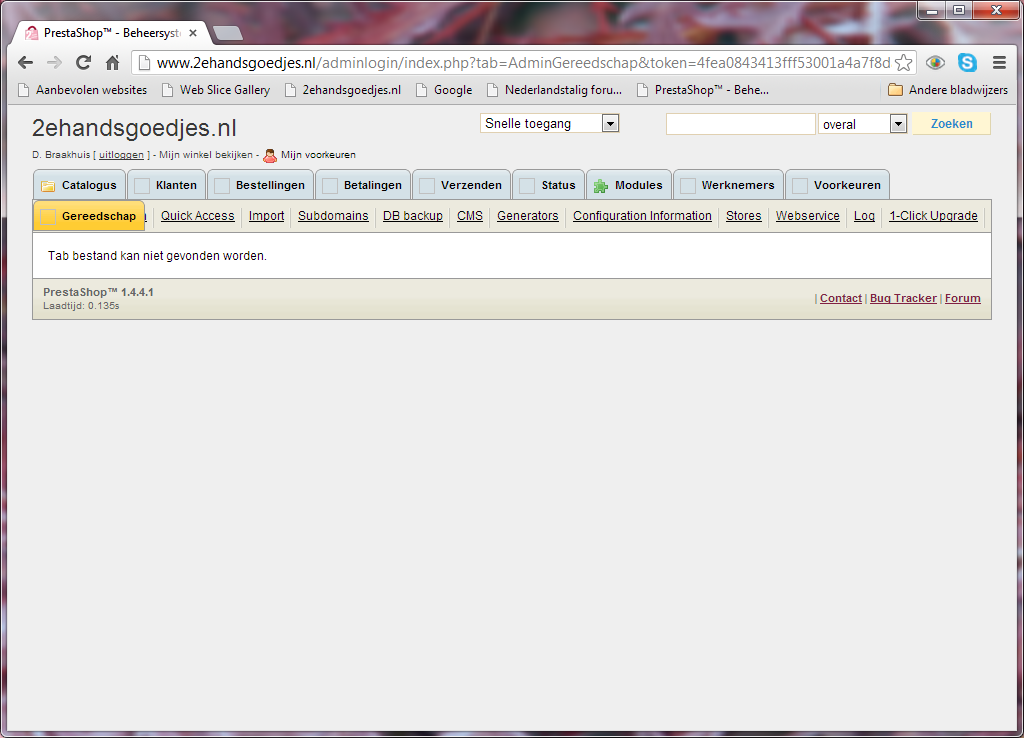 AKJV Posted November 24, 2012 Share Posted November 24, 2012 Kan je nog wel bij de pagina "Tools > Configuratie informatie" komen? Misschien staan daarin foutmeldingen waarmee je meer duidelijikheid krijgt wat er mis is. En anders via FTP het /config/config.inc.php bestand downloaden en dit stukje: @ini_set('display_errors', 'off'); define('_PS_DEBUG_SQL_', false); veranderen in dit: @ini_set('display_errors', 'on'); define('_PS_DEBUG_SQL_', true); en weer uploaden naar de juiste map. En hiernaar in je backoffice kijken of je nu een foutmelding ziet bij de tabs die problemen geven. Maar het lijkt er sterk op dat er bestanden missen in je Prestashop installatie... Hoe heb je Prestasho geinstalleerd? Via een Installatron optie in je hostingbeheersysteem? En is je installatie soms geupdate naar een nieuwere versie voordat je deze problemen ontdekte? Het kan helpen als je de hele inhoud van de /admin map van het Prestashop installatie pakket (versie 1.4.4.1 in jouw geval) upload naar je installatie op de webserver en daarbij de aanwezige bestanden overschrijft in je admin map (die altijd een andere naam heeft). Link to comment Share on other sites More sharing options...