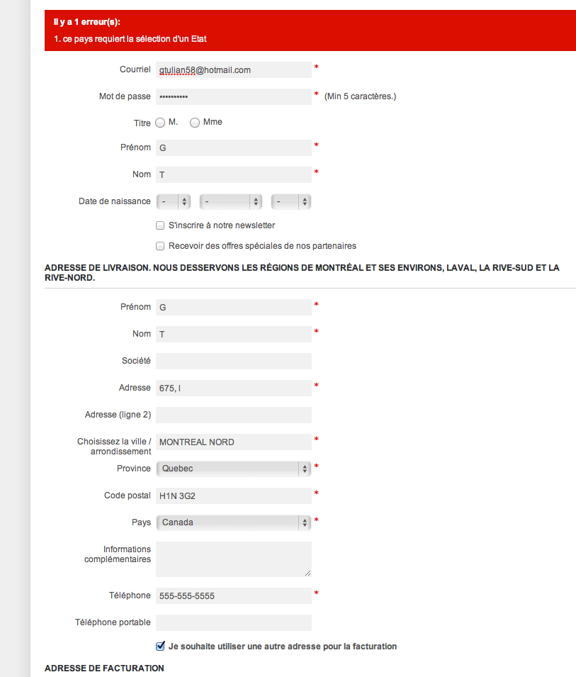 gtulian58 Posted November 20, 2012 Author Share Posted November 20, 2012 Thank you Patron, in fact I'm not interested to have states on others countries than Canada or those by default (US, Italy or Argentina). I only do deliveries on Canada which have states. The issue is when client choose a billing country other than Canada, then system ask to entry state even if country don't have states or even if option "states" for this country was deselected. I use Prestashop 1.4.8.2 (Images exemples attached) I apologize for my english Link to comment Share on other sites More sharing options...