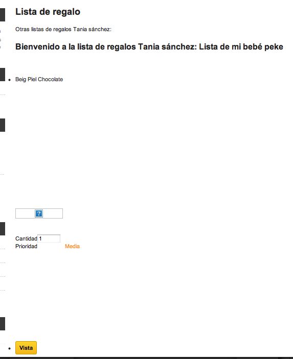 Arganoid Posted November 5, 2013 Share Posted November 5, 2013 Hola a todos! Pues eso, que estoy probando el modulo de Wishlist. He credo una lista de prueba y la he enviado para ver como iba la cosa. Me llega un email con un enlace a mi web donde se carga un listado con las miniaturas de productos. El problema es que las imágenes en miniatura no se ven, aparece como si faltase los archivos, pero cuando pulsas sobre la imagen te lleva al producto y se ven todas las imágenes correctamente. Estoy con PS 1.5.2 En su momento cuando actualicé a la versión 1.5.2 tuve que sobre escribir la carpeta "default" dentro del theme para que se vieran las imágenes de los productos. Lo digo por si tiene algo que ver. Gracias de antemano por vuestra colaboración. Un saludo. Si has creado combinaciones, en los productos deverías seleccionar una imagen por cada una de las combinaciones. Así se te mostraran las imágenes en el módulo Wishlist. Saludos! Link to comment Share on other sites More sharing options...