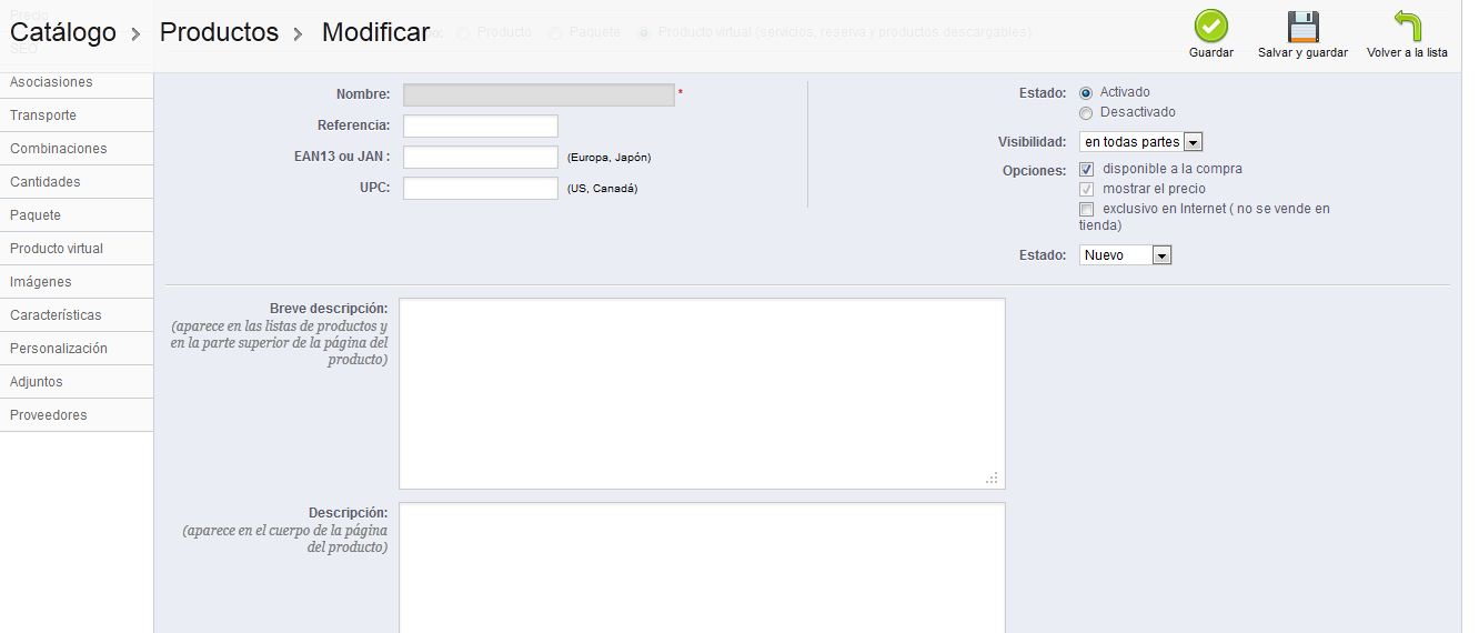 problema catalogo agregar producto nuevo