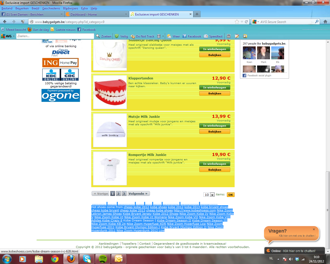 chelleke Posted November 24, 2012 Share Posted November 24, 2012 Hallo allemaal Mijn webshop www.babygadgets.be draait op Prestashop. Het gekke is dat de tekst op de indexpagina, ook de footer helemaal vetgedrukt is geworden. Geen idee hoe dat is gekomen... Op de andere pagina's is er geen probleem en ik krijg dit maar niet in orde. Wie kan helpen? Nog een probleem is dat er op elke pagina, buiten de indexpagina, hidden tekst zit. Overal dezelfde. Denk van een sjabloon dat gebruikt werd (zie bijlage). Ik vraag me af waar die tekst 'zit' om 'm te verwijderen. Alle hulp is welkom! Link to comment Share on other sites More sharing options...