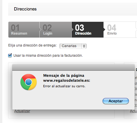 mafm10 Posted November 27, 2012 Share Posted November 27, 2012 In the purchasing process in step 4 shipping I get the error "Failed to update your car" and then I add the shipping payment module if I keep buying. This error also appears when you enter two addresses and change from one to another. Deputy screenshots. Link to comment Share on other sites More sharing options...