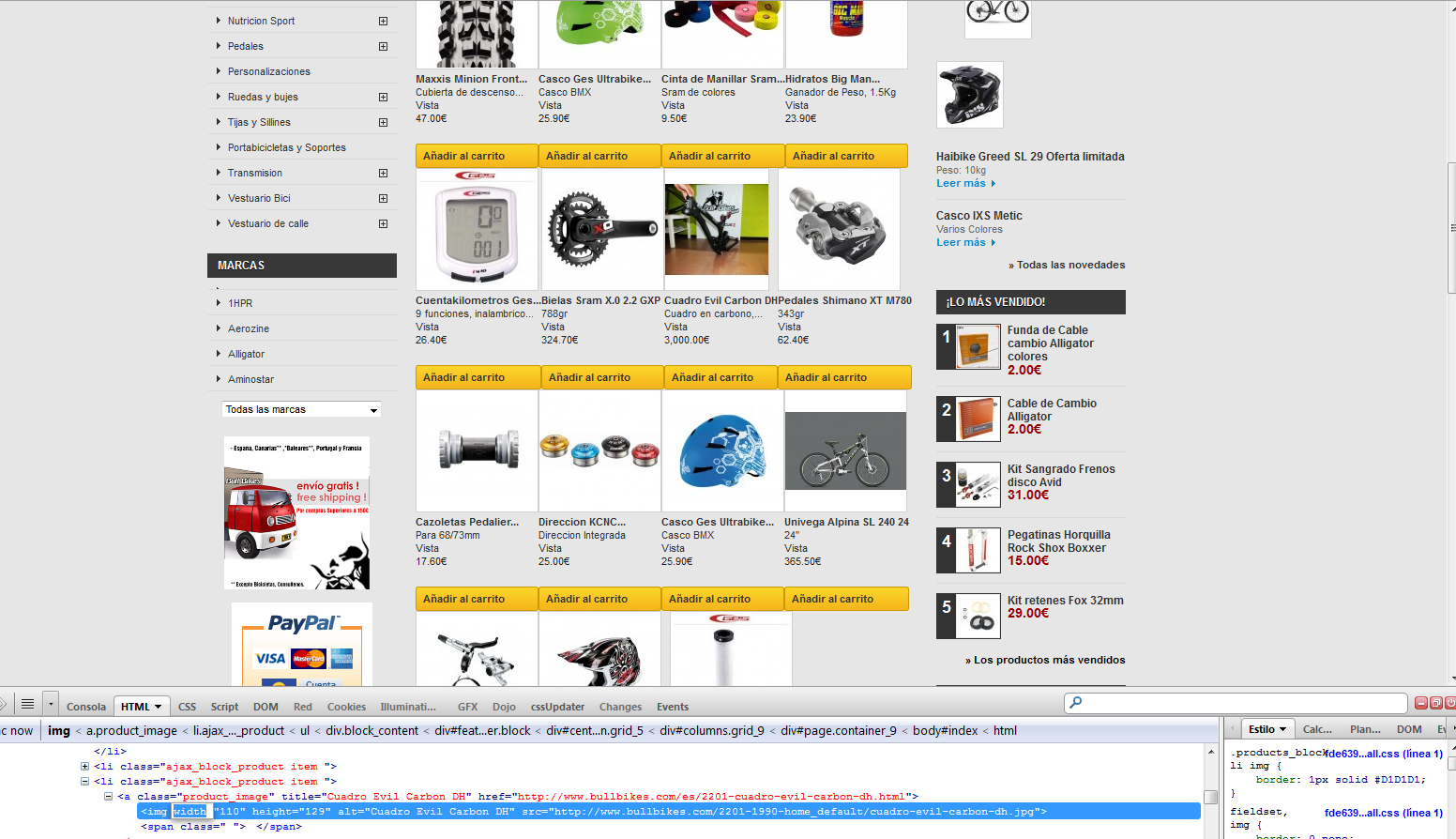 o0kubik0o Posted November 28, 2012 Share Posted November 28, 2012 (edited) El problema, es que salen los productos sin espacios entre ellos, no mantienen un tamaño fijo, y en algunas lineas aparecen 3 o 4 productos, y desalineados, la web es: www.bullbikes.com Alquien me puede ayudar? Es por el width de las imagenes: <a title="Cuadro Evil Carbon DH" href="http://www.bullbikes.com/es/2201-cuadro-evil-carbon-dh.html" class="product_image"><img width="110" height="129" alt="Cuadro Evil Carbon DH" src="http://www.bullbikes.com/2201-1990-home_default/cuadro-evil-carbon-dh.jpg"><span class=" "> </span></a> Edited November 28, 2012 by o0kubik0o (see edit history) Link to comment Share on other sites More sharing options...