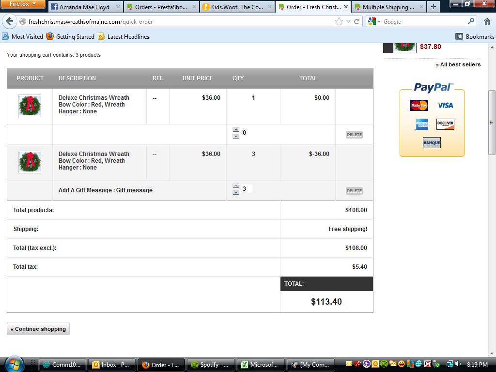 Chris04626 Posted November 28, 2012 Share Posted November 28, 2012 (edited) They are not working together on my products i have a customize field set up to input a gift message Say you order 3 of them and go to cart and select multiple addresses, it will open up the box where you select addresses but it has no quantities listed. Once you go back out into the cart the totals are out of wack I am attaching screen shots Edited November 28, 2012 by Chris04626 (see edit history) 1 Link to comment Share on other sites More sharing options...