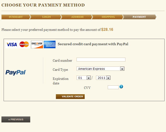 Danniee2122 Posted November 28, 2012 Share Posted November 28, 2012 Hello I currently have Prestashop 1.4.2.5 I have been having trouble with the original PayPal module, so I upgraded to the Pro. When customers go to my website and enter in their credit card information, then click validate order. Nothing happens. Seems as if the button is not even working. It stays on the same page, no response. my website is www.beautybynaturem.com if you want to try and see whats going on. I also paid $200!!!! for this non working module!! Someone please help I'm losing customers. Link to comment Share on other sites More sharing options...