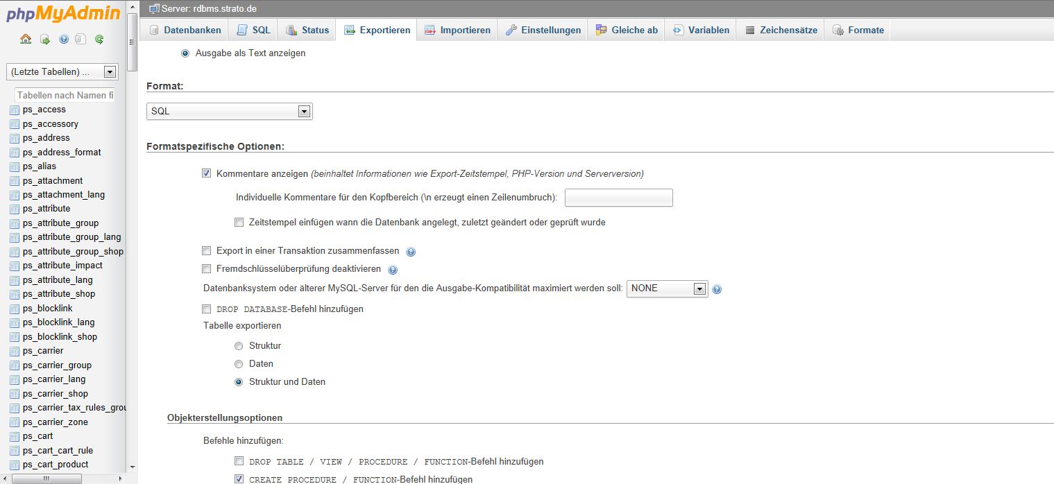 Tabellen-Präfix: ps_