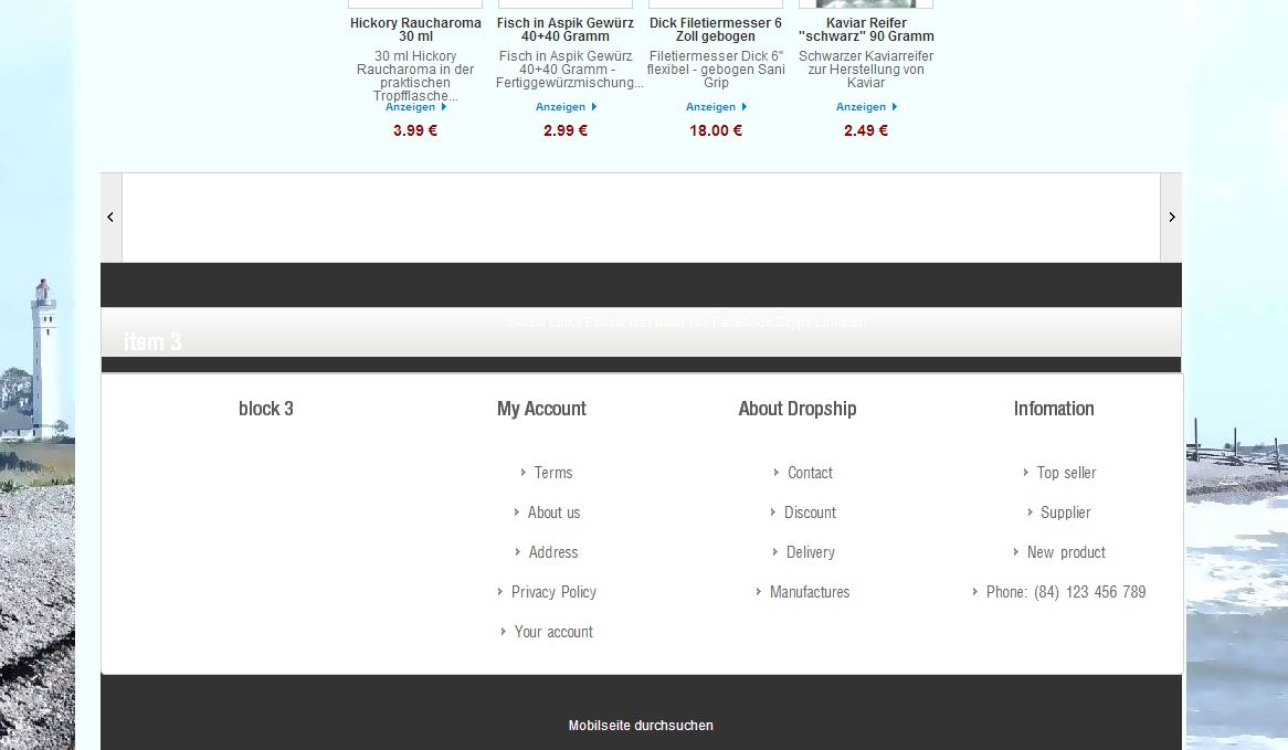 Die Skype Adresse hab ich nicht eingefügt. Das liegt wohl an dem Chrome Browser. Der stellt bei mir automatisch alle Telefonnummer so dar. Auch von anderen (fremden)Seiten. Bei IE und FF ist das nicht der Fall. Jedenfalls hab ich diesbezüglich nichts an der Seite gemacht. Als ich den Shop heruntergeladen und installiert hab, funktionierte auch alles. Auch gab es keine Probleme, nachdem die Produkte eingepflegt wurden. Nun macht man ständig Änderungen und weiß am Ende gar nicht mehr, was man so alles verändert hat. Meiner Meinung nach war es nur das Hintergrundbild und die Übersetzungen.