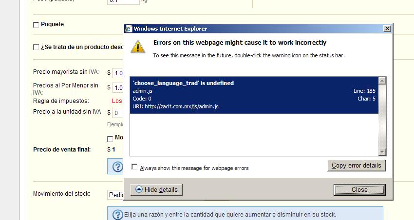 robelozano Posted December 7, 2012 Author Share Posted December 7, 2012 i use chrome and IE, the IE says only in these page that there is a admin.js error. but y copy the one from the original prestashop install but it doesnt work here is my admin.js but i dont undestand what to look for. admin.zip Link to comment Share on other sites More sharing options...