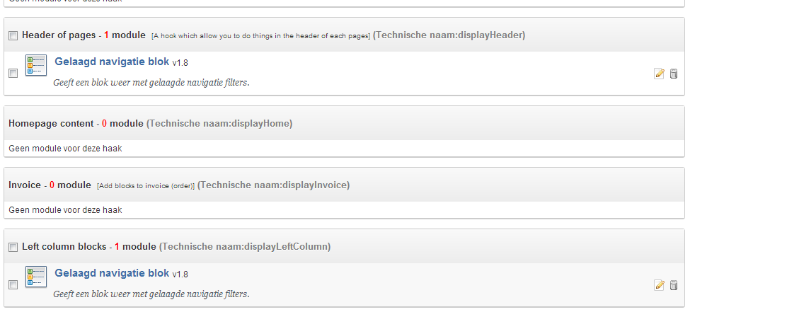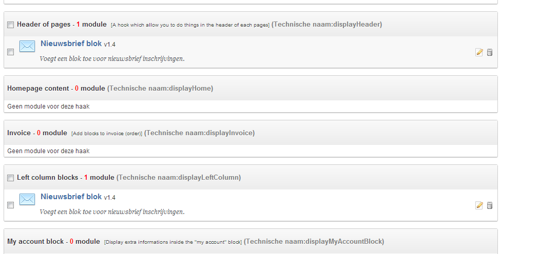 maroc1994 Posted December 19, 2012 Author Share Posted December 19, 2012 Met andere woorden, het templating systeem van Prestashop (Smarty) zet de template, in combinatie met aangevulde variabele waardes, om in een php script wat vervolgens door de webserver weer word omgezet in een voor de browser leesbare vorm waardoor variabele tekst in combinatie met html-opmaak door de browser word weergegeven. Tot zover het technische verhaal. Als je de smarty debug console aanzet (in Prestashop v1.5 kan dit via Geavanceerde Parameters->Performance->Debug console optie 'Open console met URL parameters (SMARTY_DEBUG)' of 'Altijd console openen') kun je onder andere zien welke templates er geparsed worden richting de browser voor weergave. Als de templates al niet door Smarty worden geparsed gaat er al eerder iets mis met het uitvoeren van de modules of de hooks in de modules. Hallo Bedankt voor de uitleg! Ik denk dat het toch iets met de hooks te maken heeft. Andere modules werken gewoon behalve die twee. Wilt u misschien zelf er naar kijken, misschien dat ik iets over het hoofd heb gezien. ik hoor graag van u! mvg, Link to comment Share on other sites More sharing options...