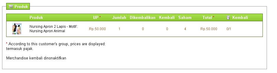 dan Ketika saya check di Menu Pembelian , Kotak/Form dan Tombol/Button untuk mengembalikan barang yang dipesan sudah blank/kosong/tidak ada seperti ini :