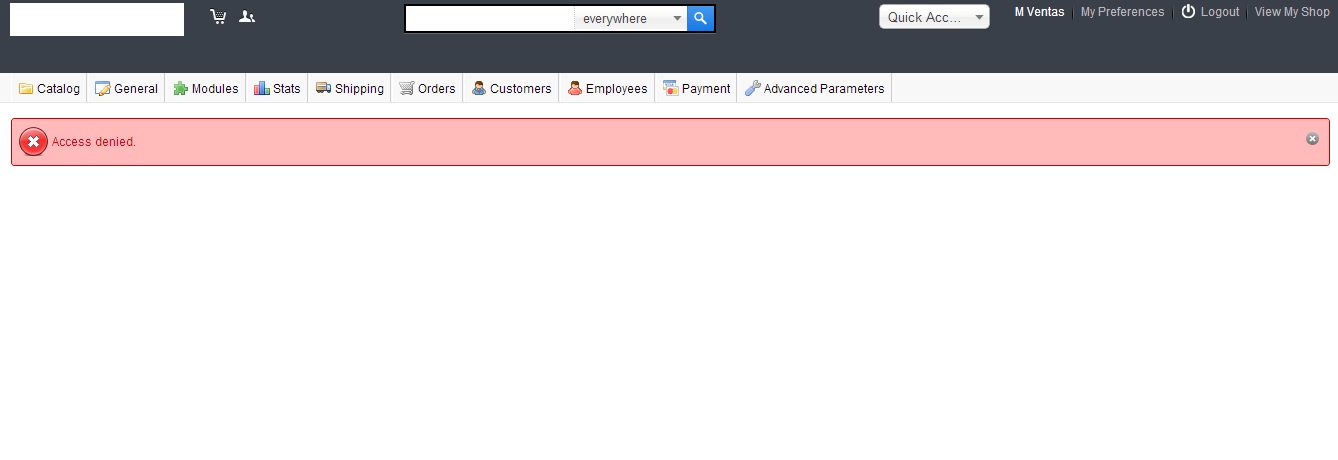 Mr_Marlo Posted December 26, 2012 Share Posted December 26, 2012 Hello, I made two test upgrade from version 1.3.7 to 1.4.9 and after the 1.3.7 to 1.5.2. and in both I have the same problem on the tab of the back office. Access Denied. Someone could help me? Link to comment Share on other sites More sharing options...
