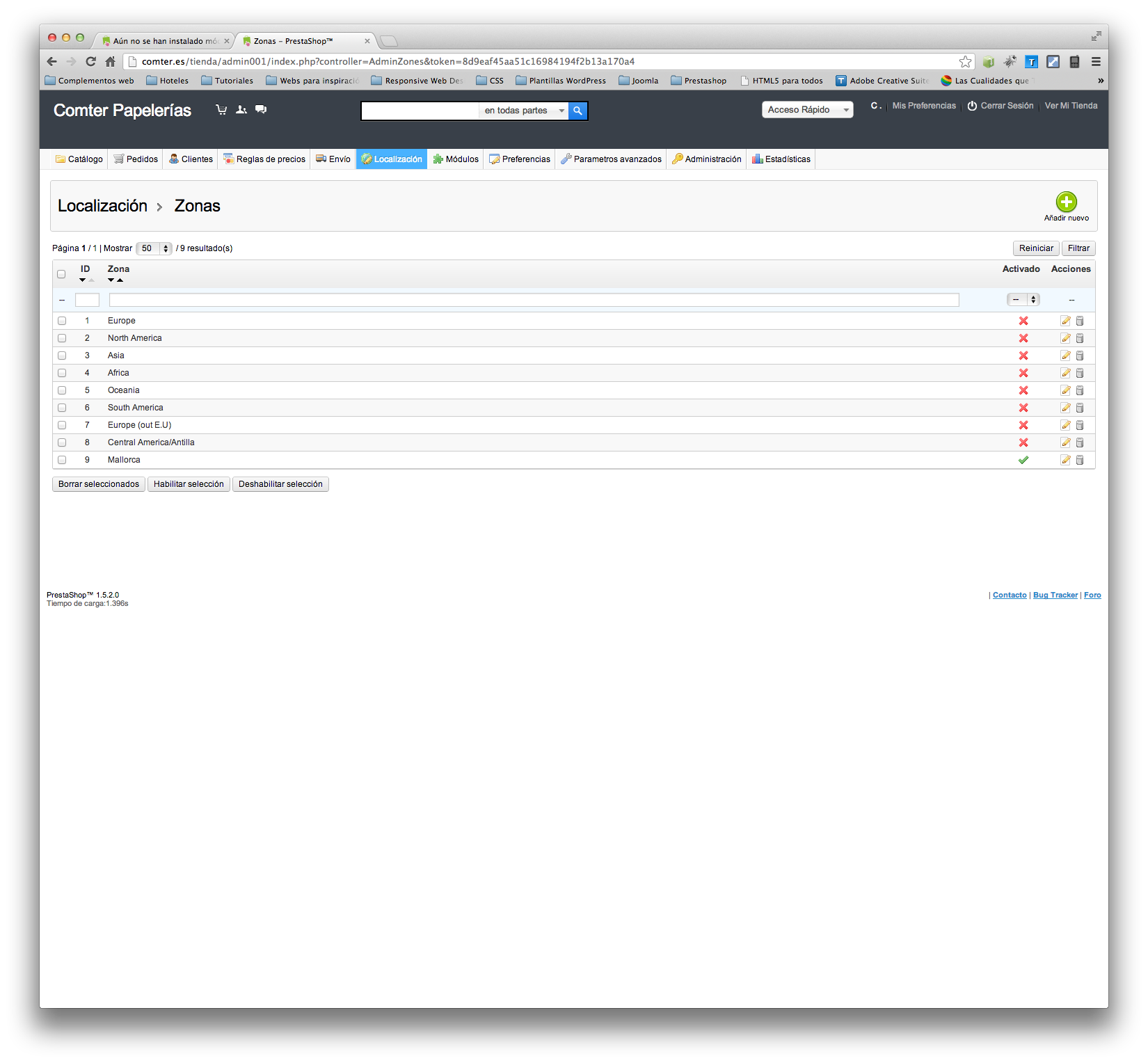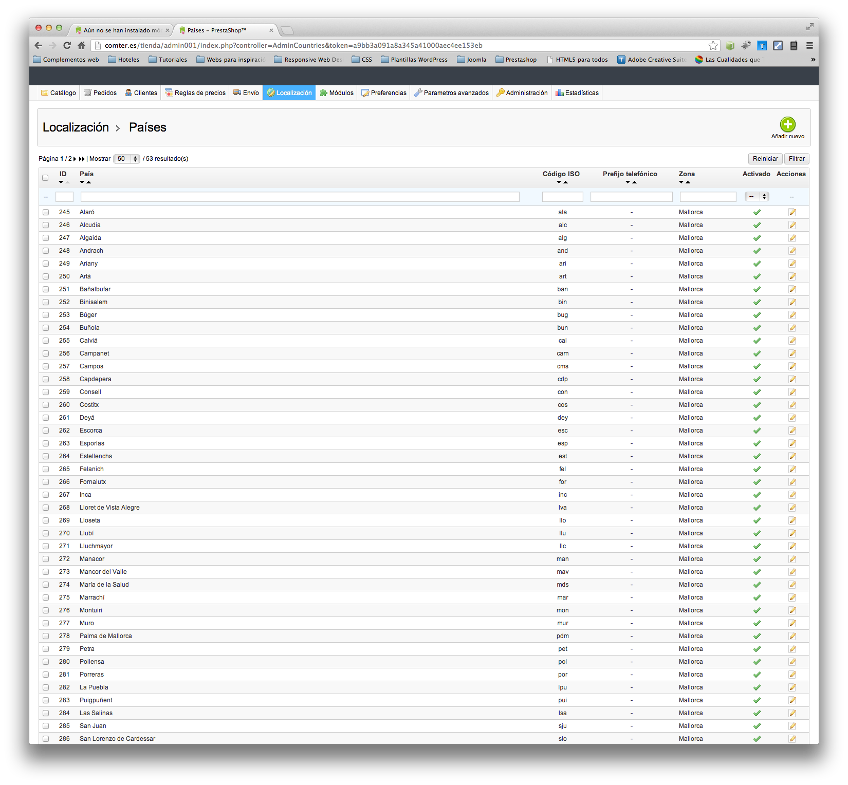 Como bien dices, son poblaciones de Mallorca,pues la tienda sólo va a vender en Mallorca. He creado una zona llamada Mallorca y es la única que está ativa y también es la que le tengo asignada al transportista.